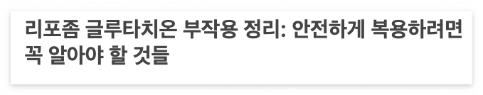 예산에 따라 일반 글루타치온은 장기적인 관리 목적으로 적합하며, 특정 목표치에 도달하기 위해 단기간 집중적인 관리를 원한다면 리포좀 글루타치온을 추천드립니다. 다만, 리포좀 제품의 경우 맛이나 질감뿐 아니라 부작용 가능성(예: 위장 불편)을 염두에 두고 복용 전 사전 정보 확인은 필수입니다.