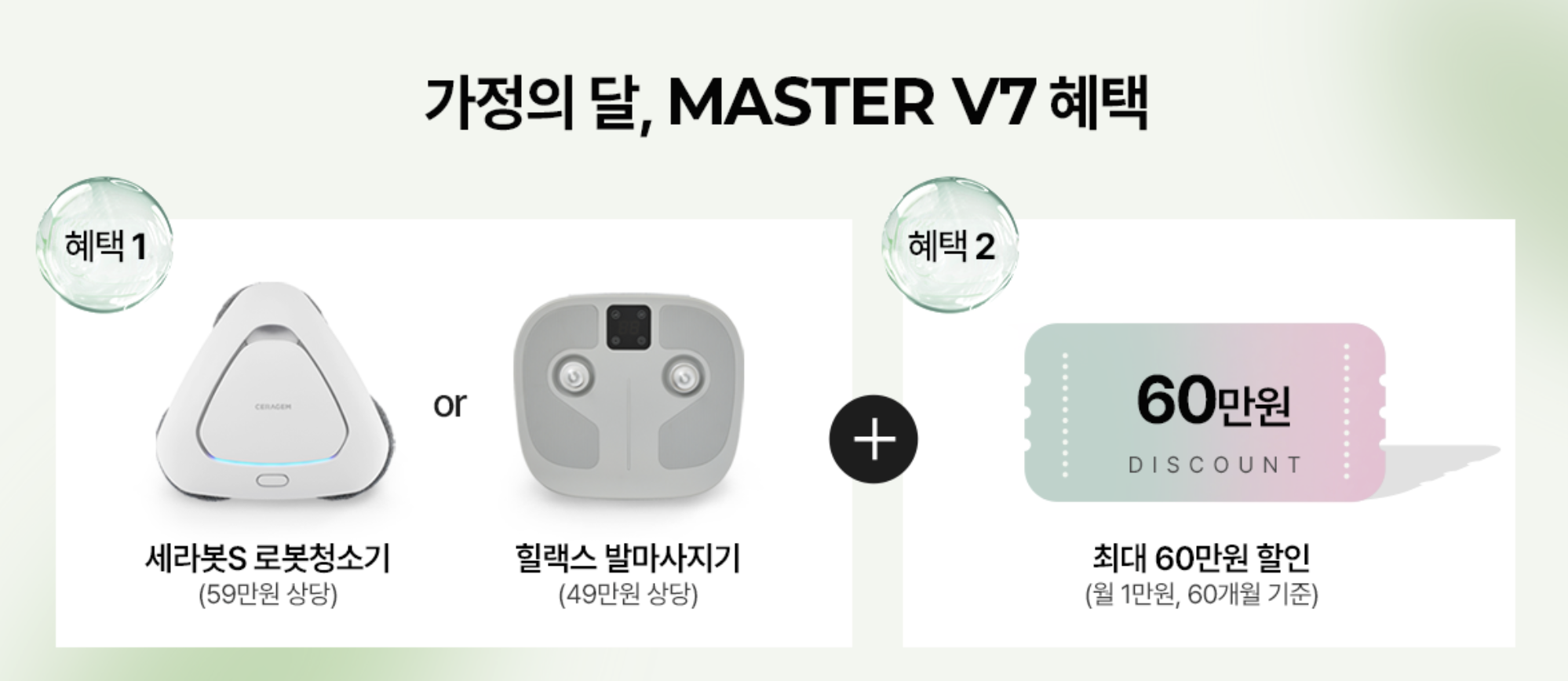 세라젬은 다양한 모델과 구매 옵션, 렌탈 할인 제도를 제공해
