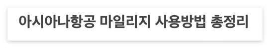아시아나항공 마일리지 사용방법 활용 꿀팁